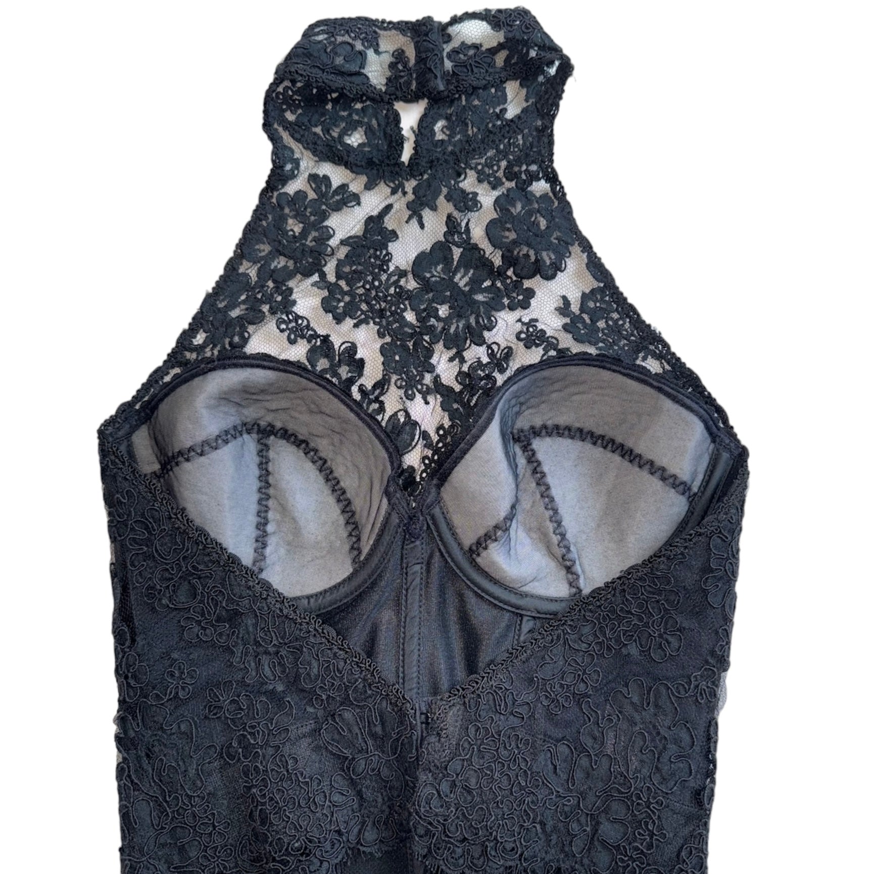 Vintage high neck lace bustier with low back.