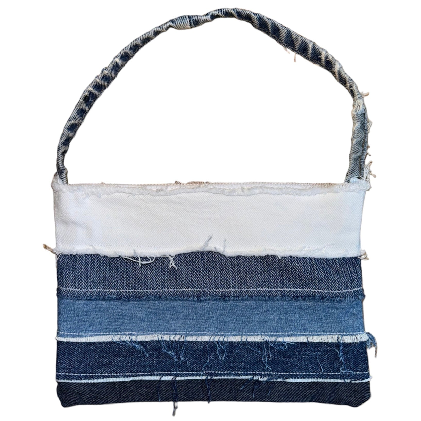 Upcycled shoulder bag with zipper from six different vintage denim jeans.