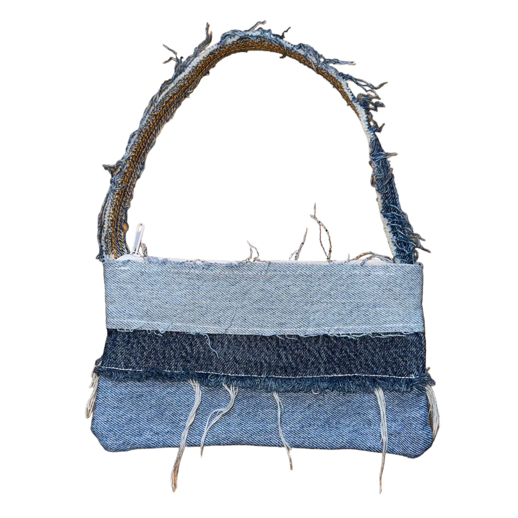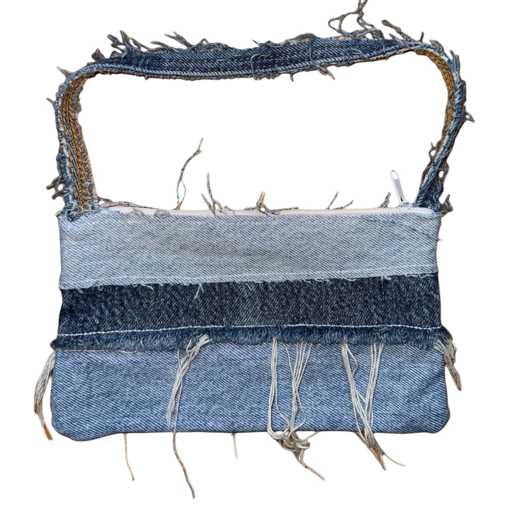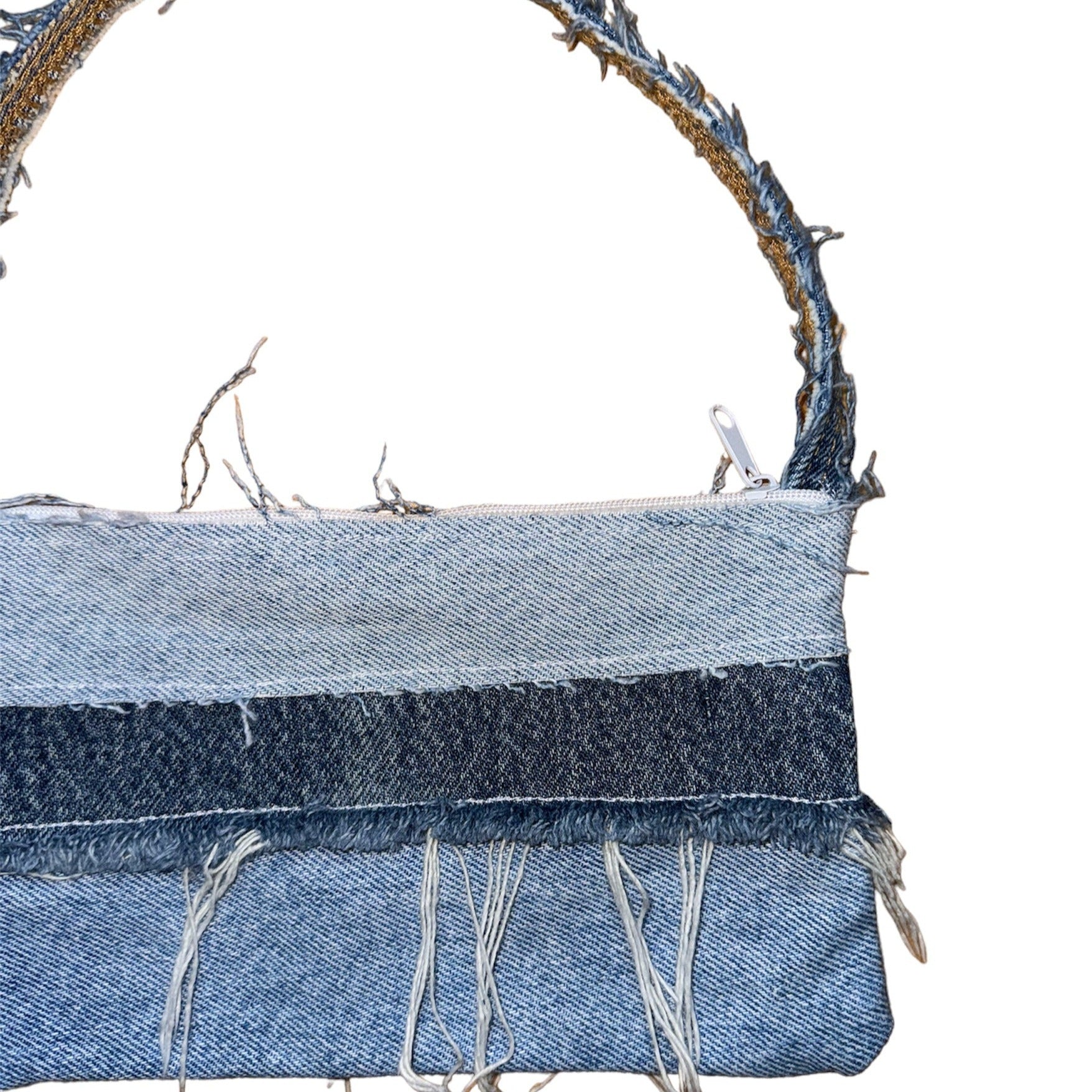 Upcycled shoulder bag with zipper from four different vintage denim jeans.
