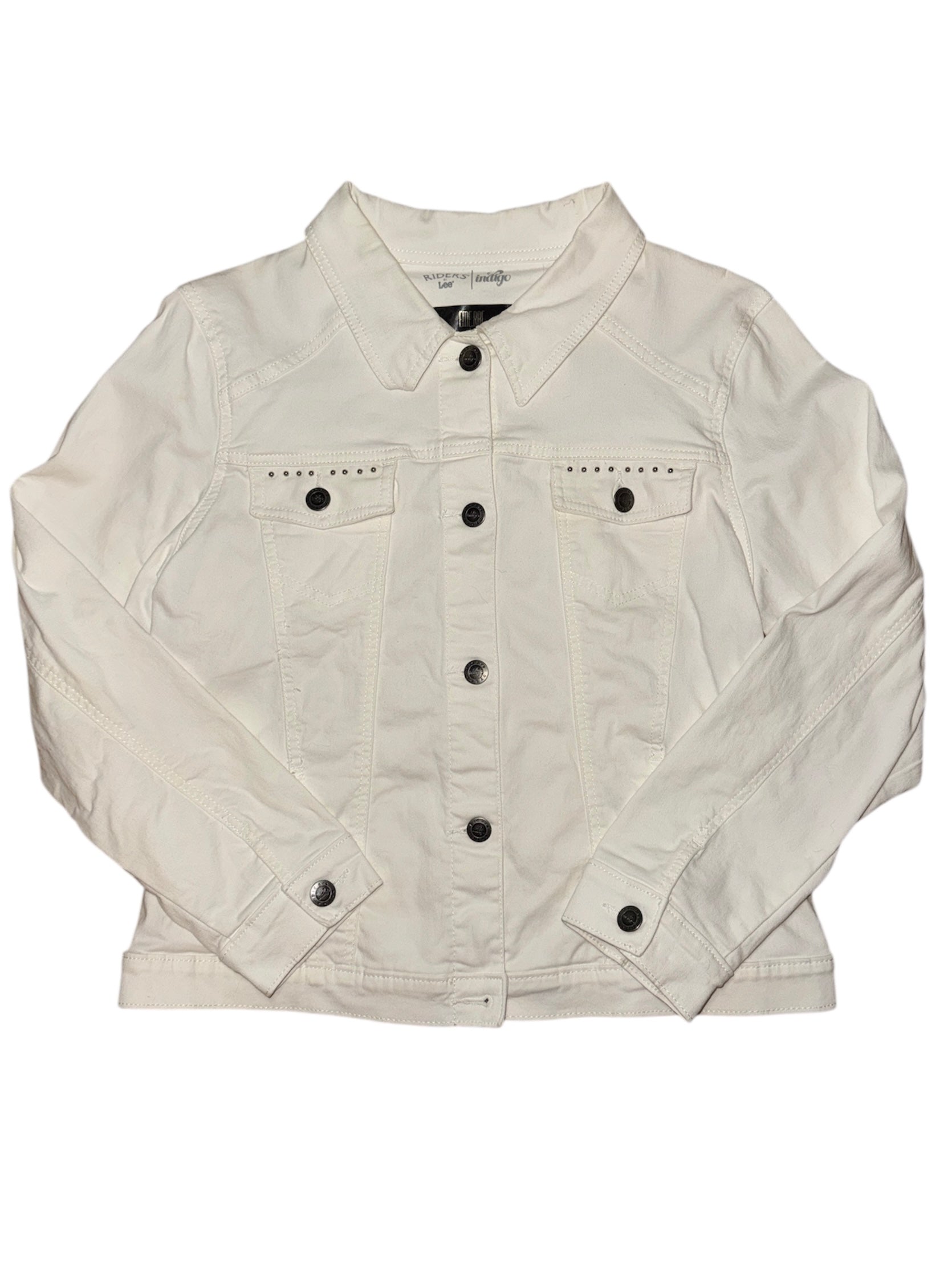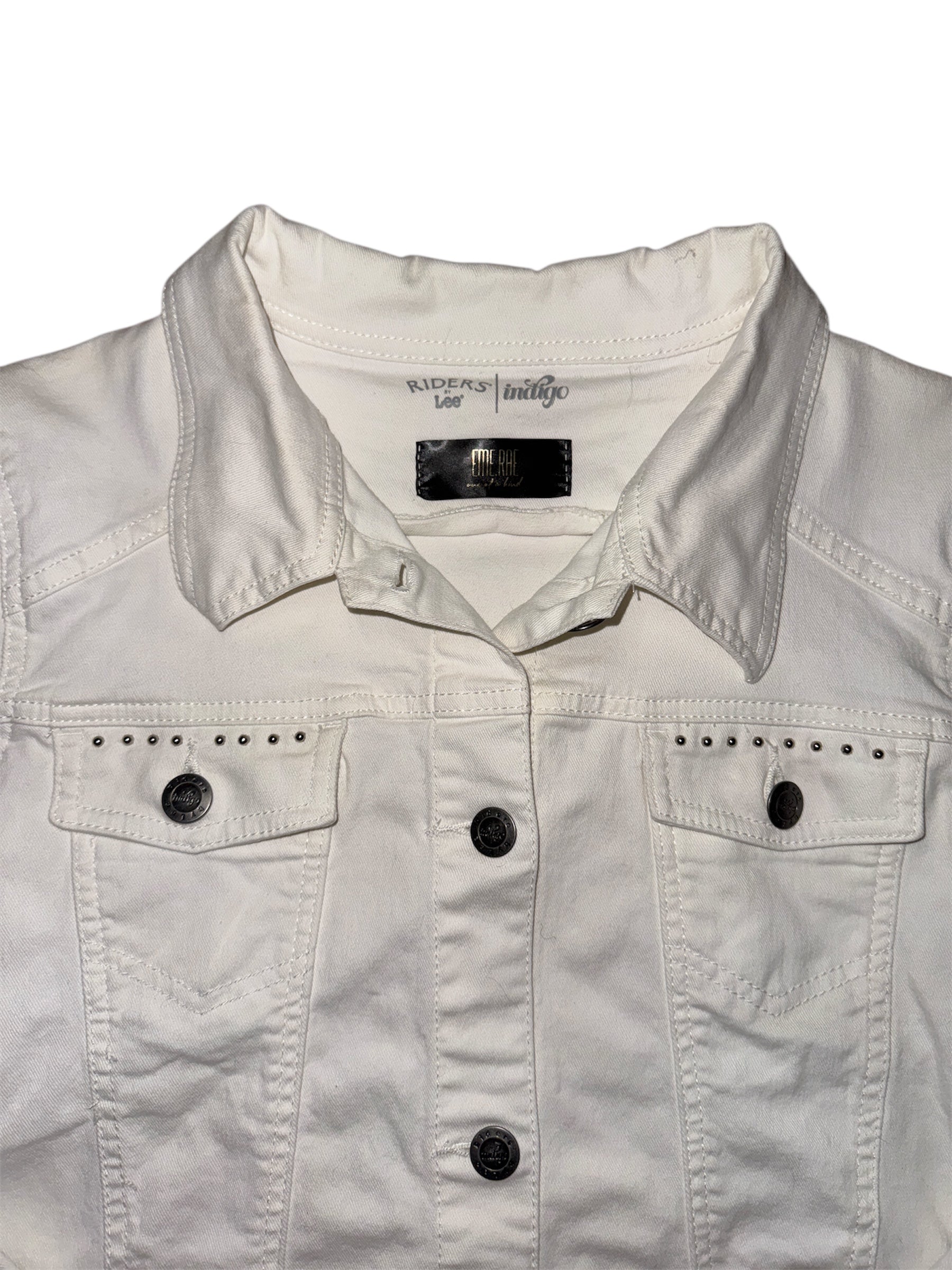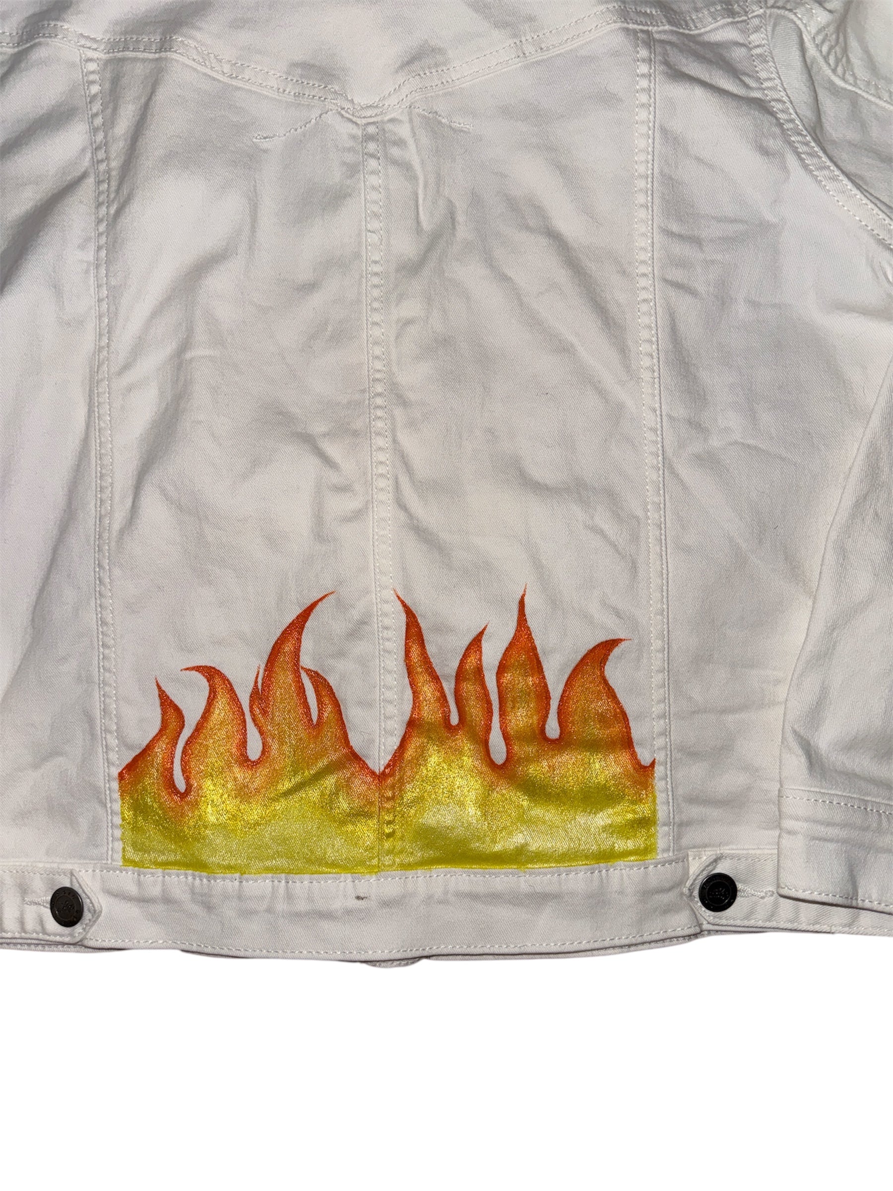 Upcycled denim jacket with added metal detailing and hand painted flame.