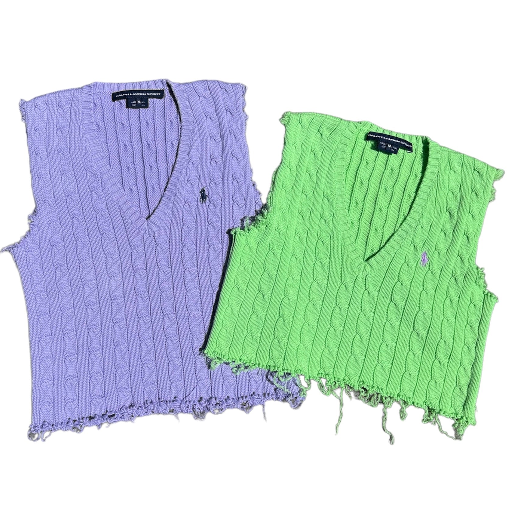 Upcycled vintage Ralph Lauren Sport blue label cut off sweater.