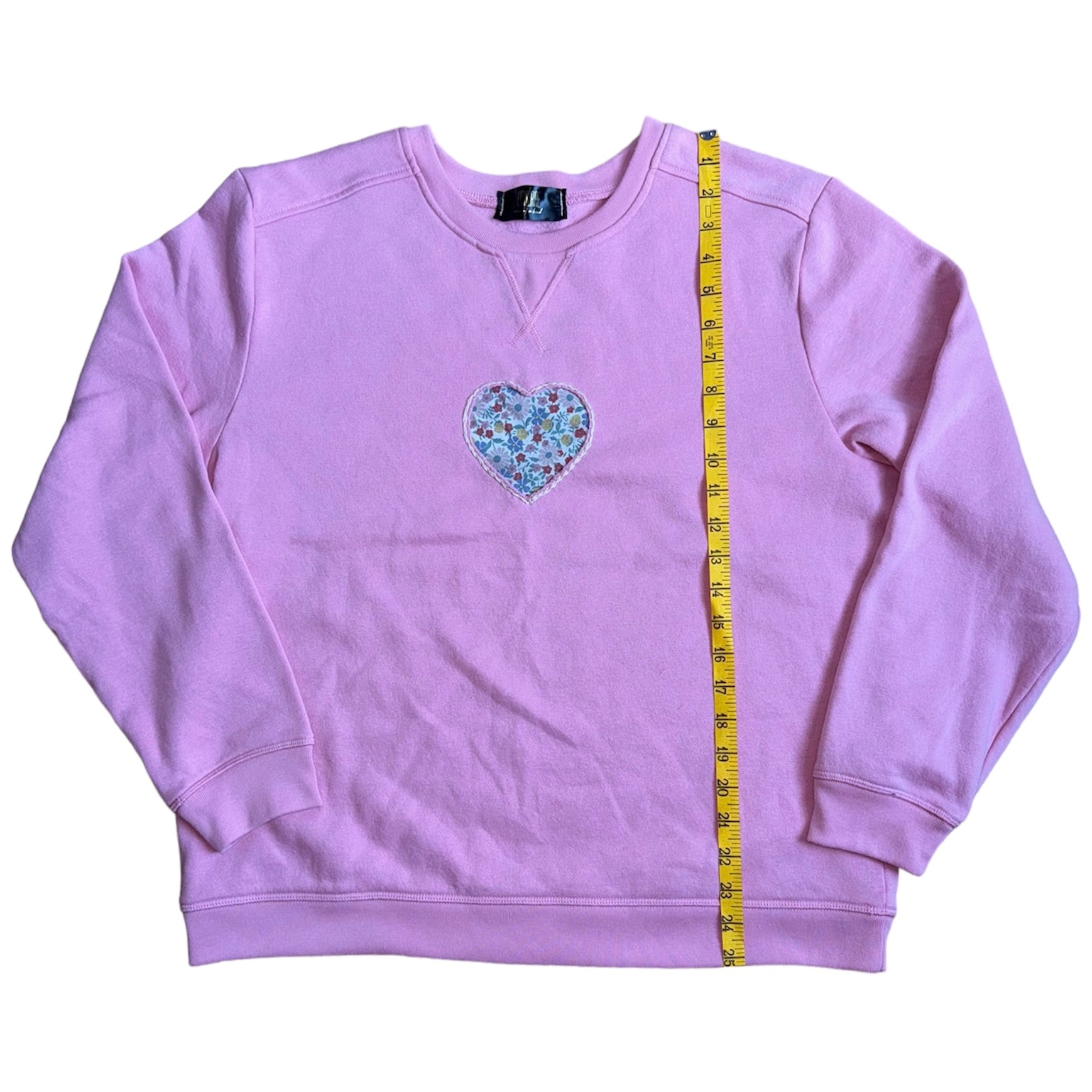 Upcycled sweatshirt with embroidered floral heart.