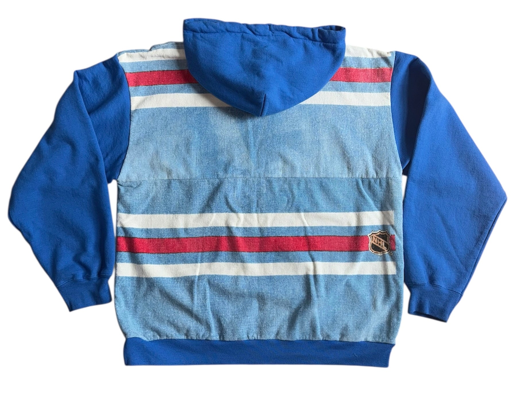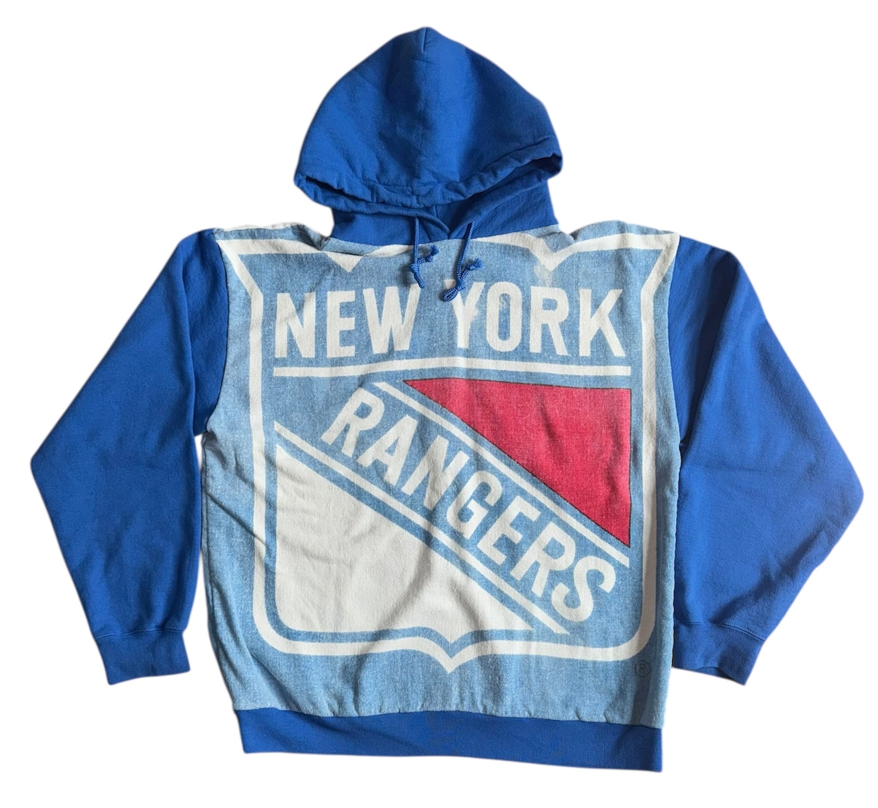 Upcycled New York Rangers hoodie from a towel and a vintage damaged hoodie.
