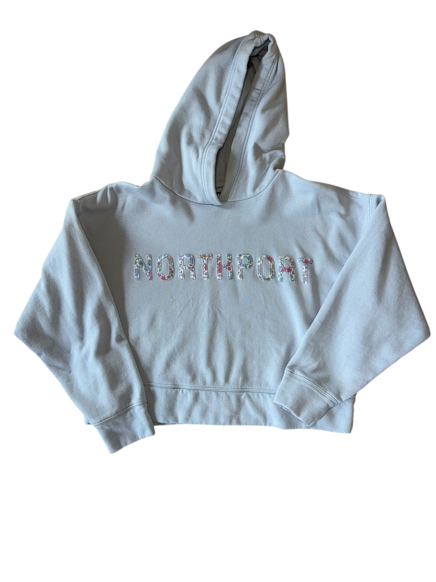 Upcycled hoodie with "Northport" lettering from vintage material.