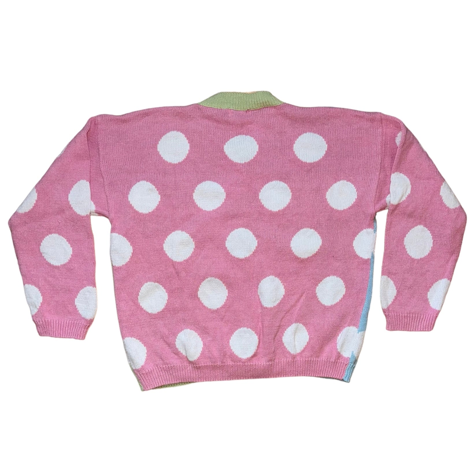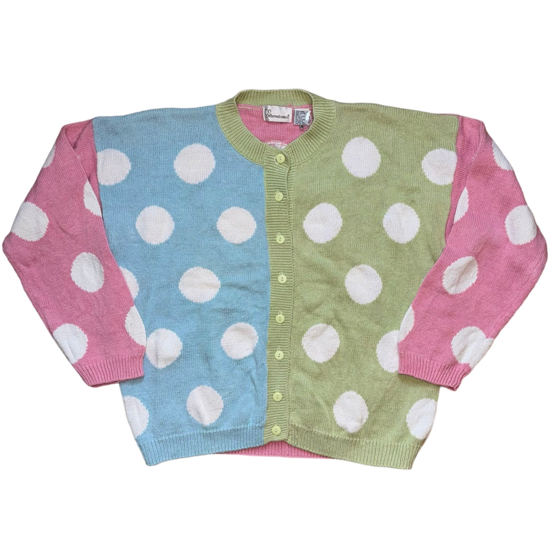 Vintage multicolor polkadot sweater, comes with one additional button.