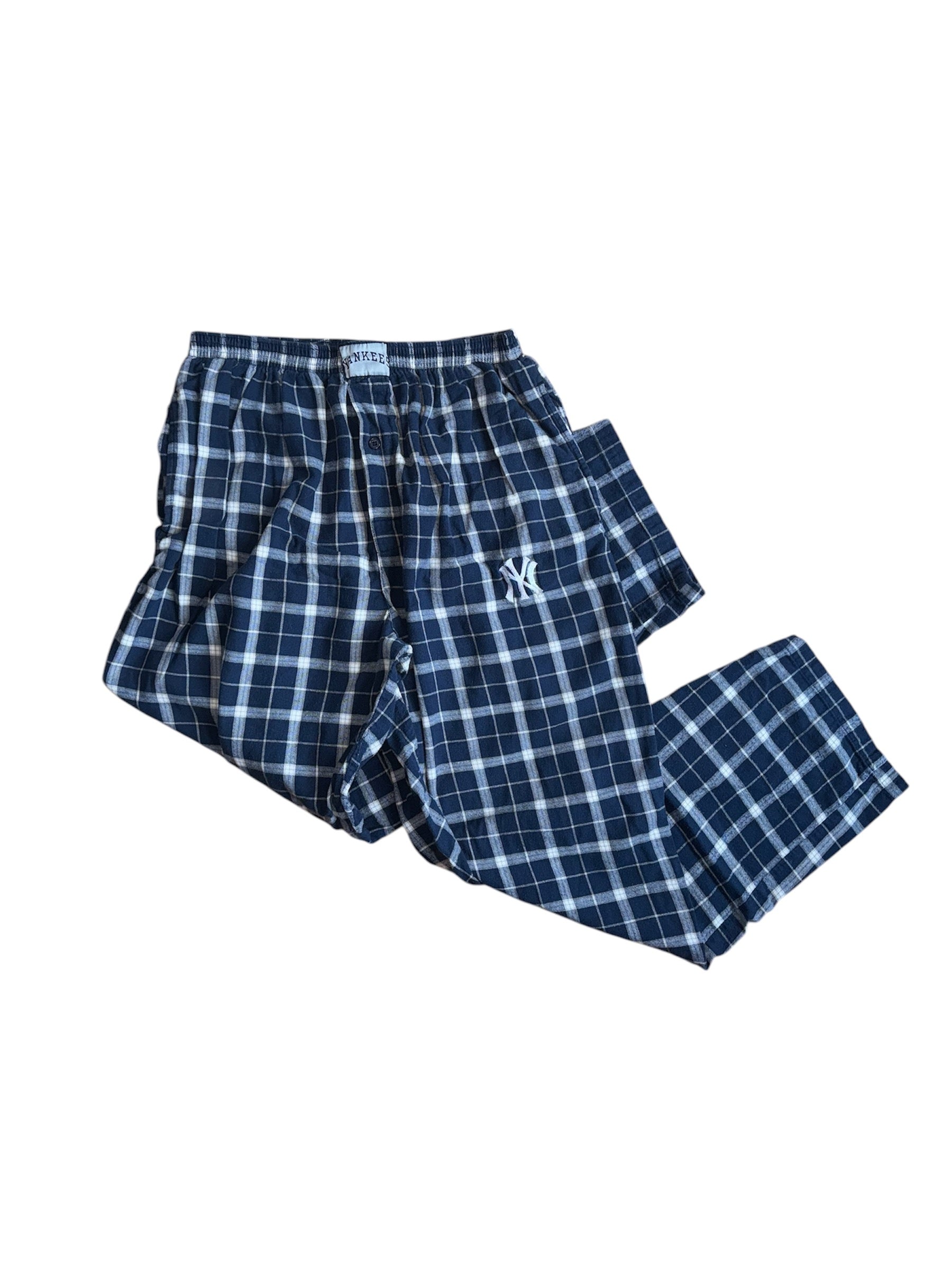 Vintage Yankees plaid lounge pants, 100% cotton.